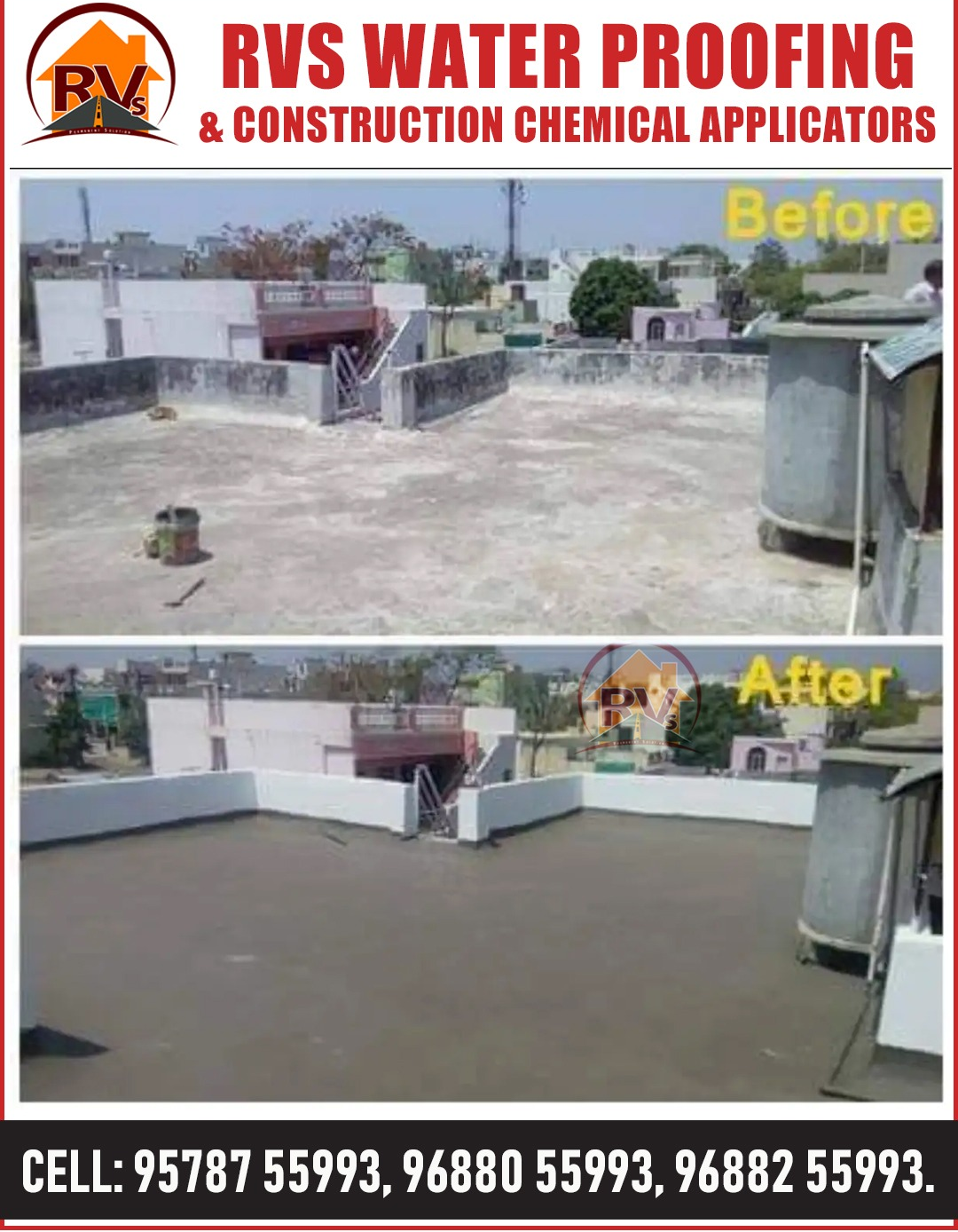 building leakage specialist in karumandapam Rvs waterproofing construction chemicals Application waterproofing is very straightforward: to protect an object from water-based damage. Often, the main function of waterproofing material is to keep water out from an area or to keep water contained within an area.